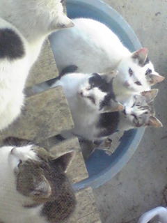 背中の後ろで、猫がにゃーにゃーうるさいです。