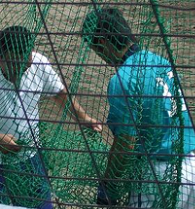 ネットが絡んでしまって必死にほどく古木。