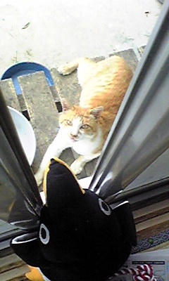 ちゃろたち猫が入って来れないように銀ちゃんが見張ってます。
