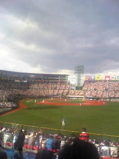 今日は中継を見てベイ戦と気付いたのか、パパンから「どっちがわにいるの」とメールが。